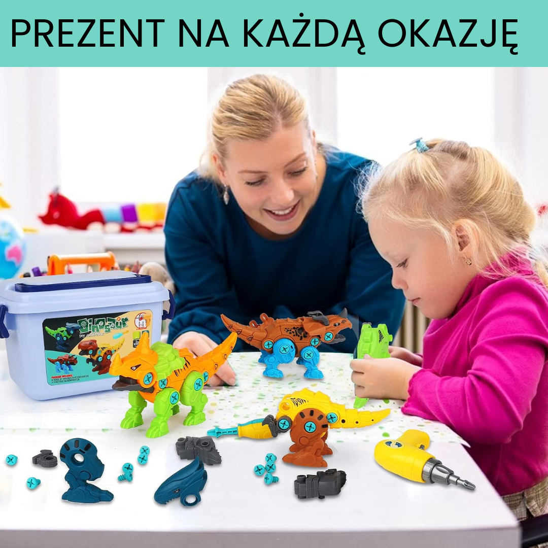 Bo to zabawka, która naprawdę działa, zachwyca i daje święty spokój. Rodzice doceniają solidne materiały, bezpieczne krawędzie oraz fakt, że zestaw wytrzymuje intensywną zabawę. Wkrętarka faktycznie spełnia swoją funkcję, a dinozaury po złożeniu są stabilne i trwałe. Zestaw rozwija motorykę, logiczne myślenie i koncentrację, a dzięki praktycznemu kuferkowi wszystko łatwo utrzymać w porządku. Nic dziwnego, że tak wiele osób pisze: „dziecko przeszczęśliwe”, „frajda ogromna”, „super prezent”.