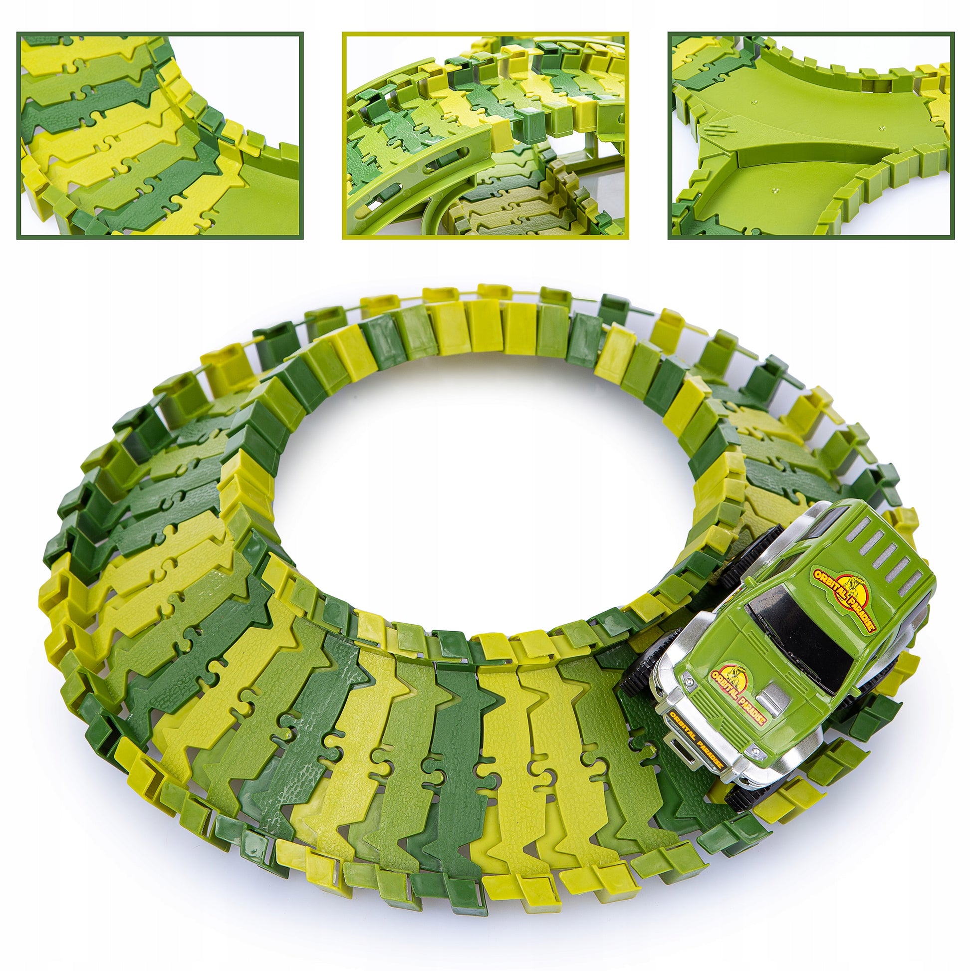 🐊 Elastyczność "Wstążki": Elementy łatwo się wpinają i wypinają. Tor można wyginać w dowolną stronę nawet podczas jazdy autka!