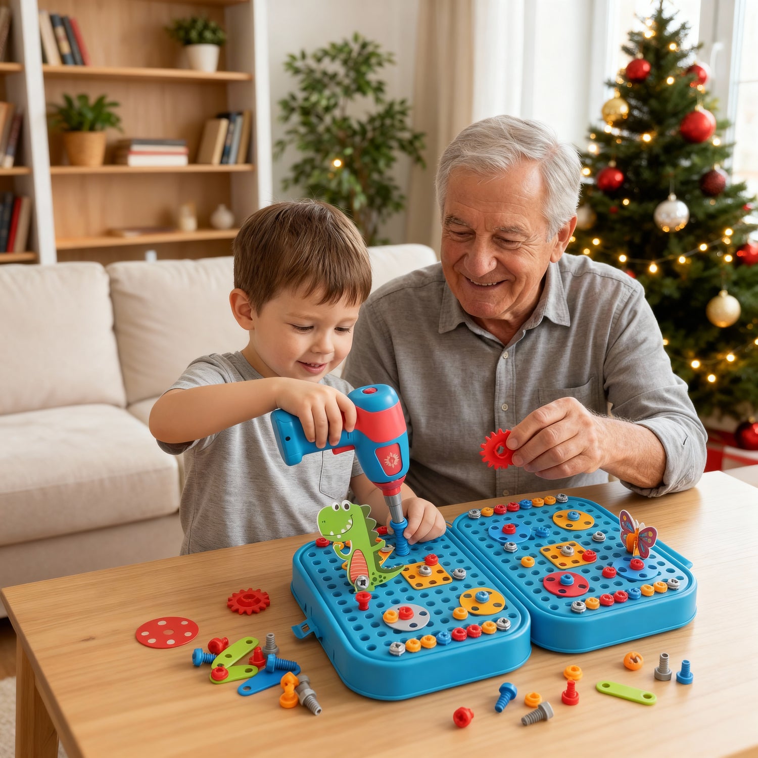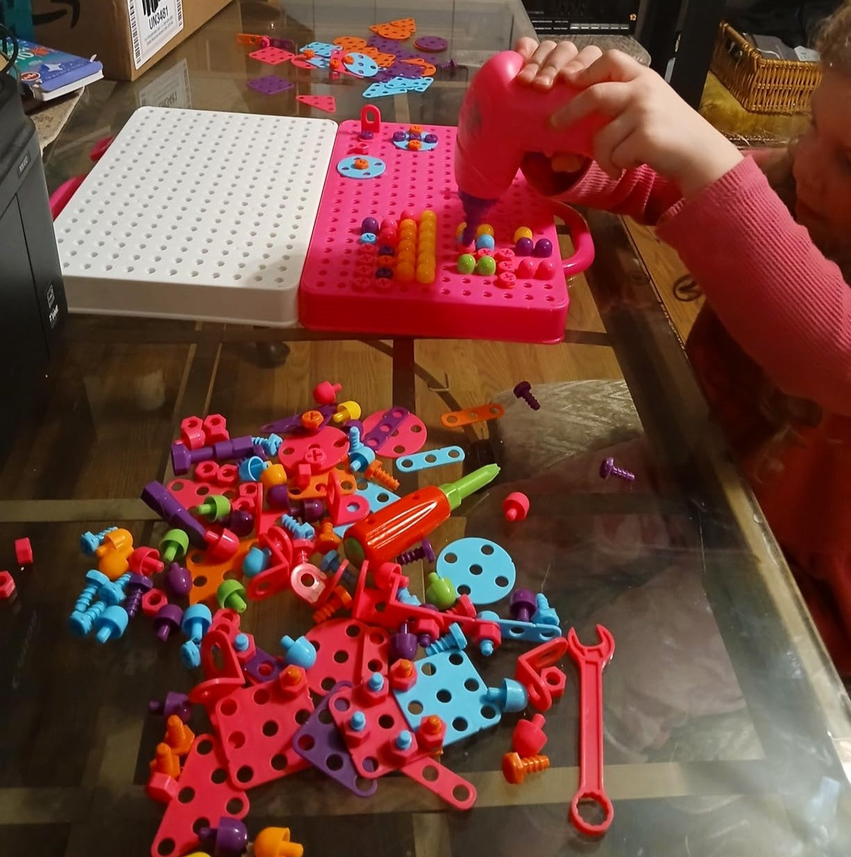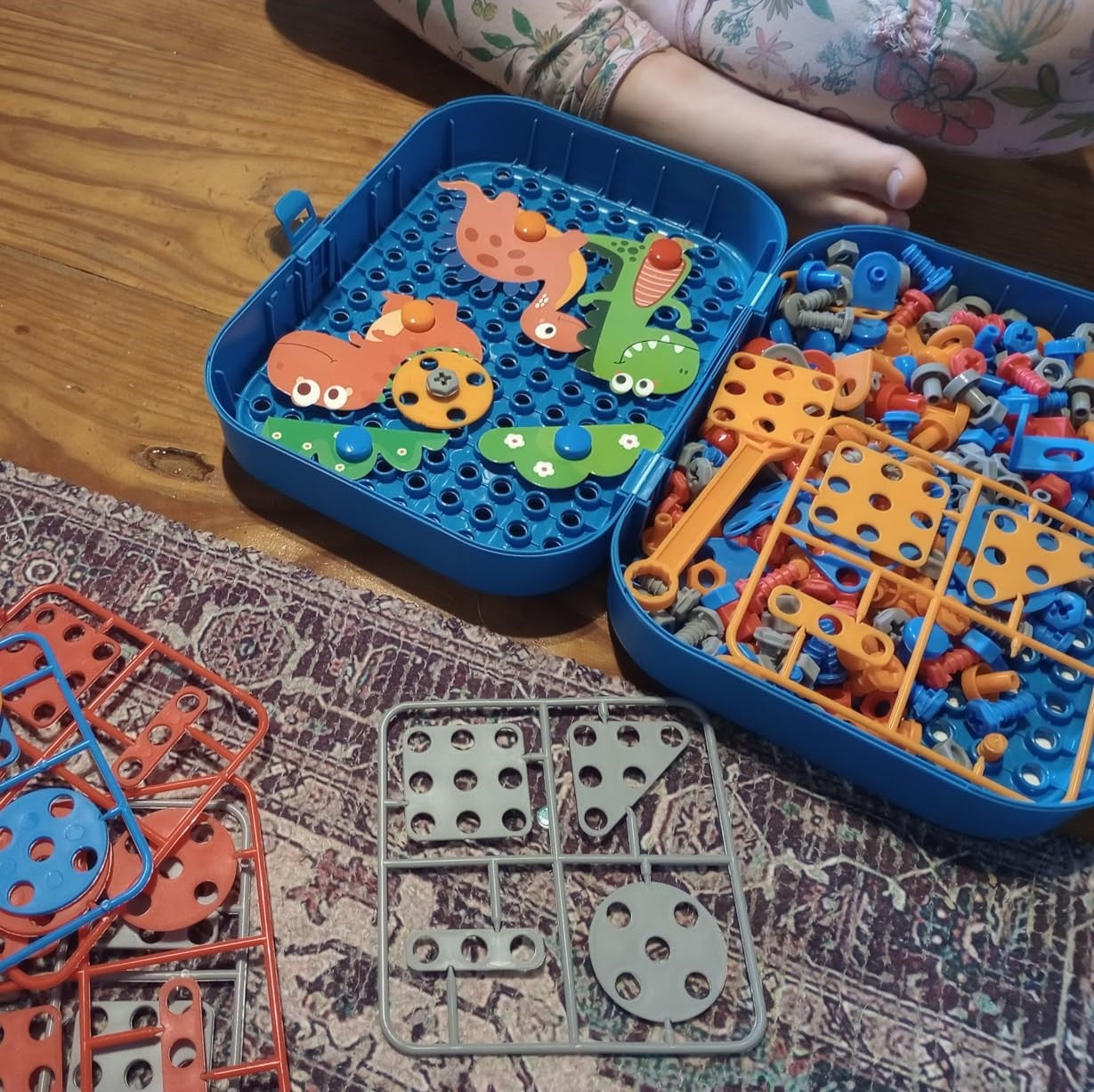 Praktyczna walizka służy jako baza do przykręcania śrubek, a po skończonej zabawie mieści w sobie wszystkie klocki. Koniec ze świątecznym bałaganem – zamykasz zestaw „na klik” i w kilka chwil przywracasz ład w pokoju.
